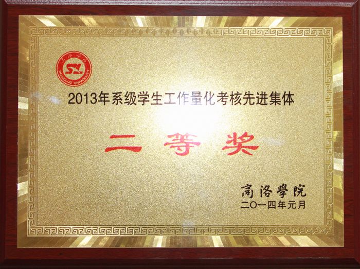 1月9日,我校召开2013年学生工作交流会暨先进表彰大会,我系荣获商洛学院2013年度系级学生工作量化考核先进集体二等奖,数学1002班班主任程国的工作日志被评为优秀学生工作日志。