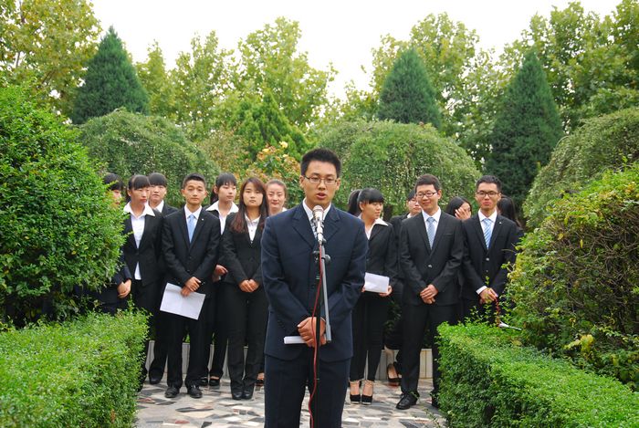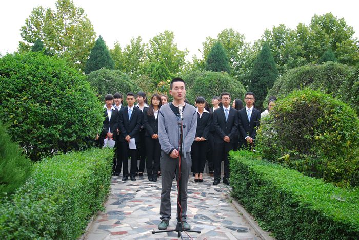 10月12日下午,我院团总支、学生会在2号教学楼后小花园隆重举行了新一届团学干部就职典礼,院团总支书记郭萌和80多名学生干部一起共同见证了这庄严的一刻。