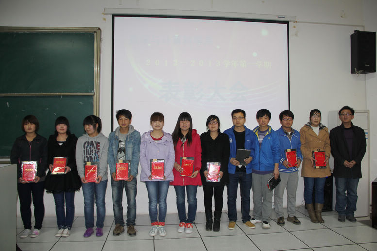 3月13日下午,我系在报告厅三隆重举行了2012-2013学年第一学期表彰大会,系党总支副书记赵健、系团总支书记郭萌、辅导员古妍以及大一、大二全体学生参加了会议。大会共表彰了我系在2012-2013学年第一学期各项活动中涌现出的先进个人26名、先进工作者11名,系团总支书记郭萌以及学生会主要干部分别为先进工作者和先进个人颁发了荣誉证书和奖品。系学生会各部部长对先进个人的事迹分别作了介绍和点评,获奖同学作了获奖感言。最后,赵书记作了总结讲话,要求各位同学以受到表彰的同学为榜样,赶超先进,志存高远,脚踏实地,实现思想成长、学业进步、身心健康有机结合;希望受到表彰奖励的同学戒骄戒躁,在实现德智体全面发展、发挥模范带头作用的同时,号召全系学生再接再厉,再创佳绩。