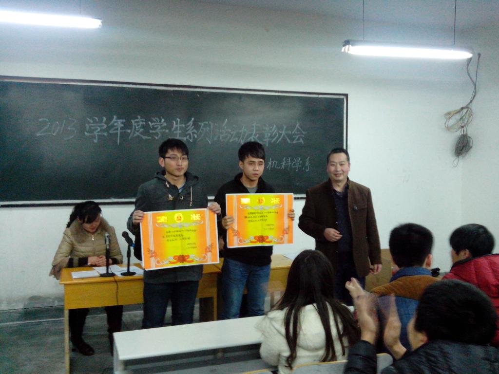 2014年3月6日,我系2013学年度学生系列活动表彰大会在2号教学楼323教室隆重举行,表彰2013学年度表现突出的“先进个人”和“优秀班集体”。