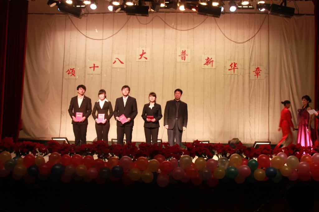 寇伟强的《绽放十八大后的中国》,李云菲的《秋思十八大,争做好青年》,孙笑飞的《追忆光辉历程,奉献无悔青春》,他们对过去与现在做了比较,体现了在中国共产党领导下经济发展的飞快发展,表现了中国坚持走中国特色社会主义道路是正确的选择,号召广大青年学生坚持中国共产党的领导,心中装着党,时刻以党员的标准来要求自己,为了祖国的繁荣昌盛做出自己应有的贡献。他们获得了本次比赛的二等奖。