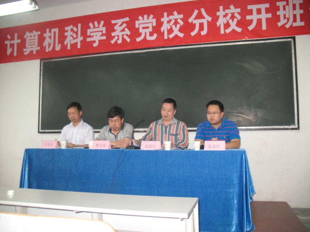 2012年5月11日商洛学院计算机科学系党校分校开班仪式在2号楼323教室顺利进行。出席此次开班仪式的有计算机科学系樊景博书记、刘爱军老师、任康民主任及张永红老师。此次会议由刘爱军老师主持。