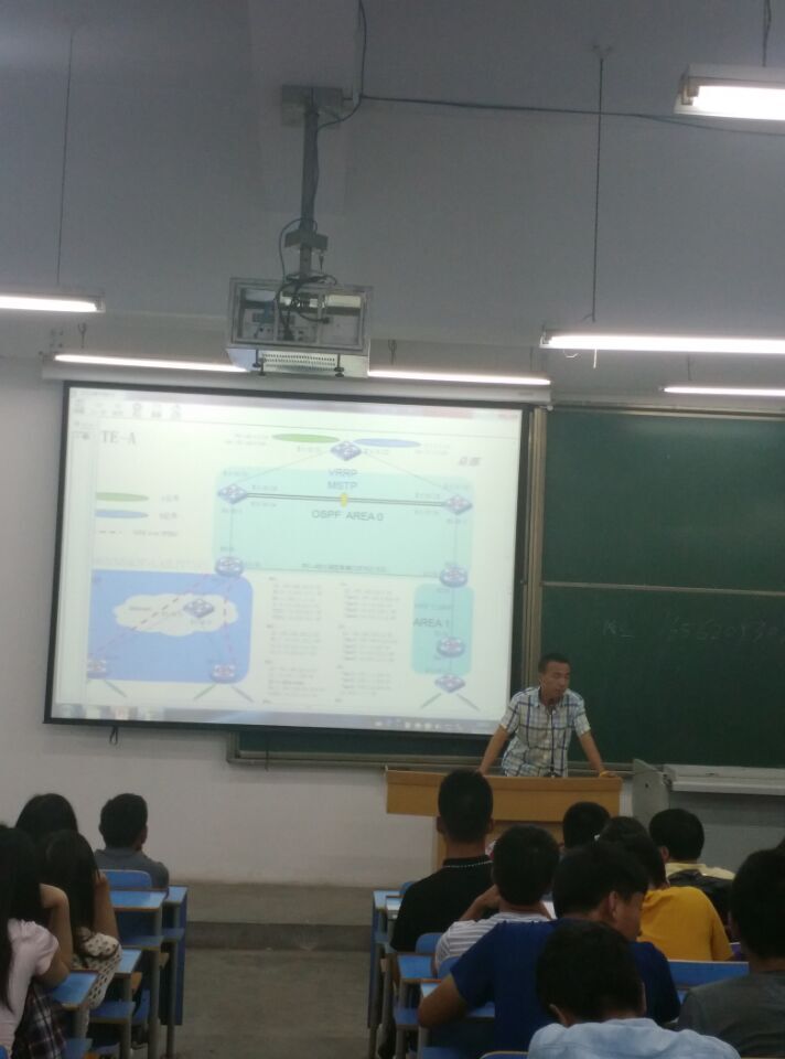 报告会上,三位学长分别讲述了自己在进行学习方面所遇到的困难,但经过努力的解决,最终取得了一定的成绩。首先作报告的是陈立学长,他在2014年和2015年分别获得了华三网络技术大赛陕西赛区二等奖,他在网络方面主攻路由配置,熟练华三华为路由交换产品的配置,对这些硬件设备有着浓厚的兴趣爱好!同时他也给我们讲述了自己的网络之路,使我们受益匪浅。