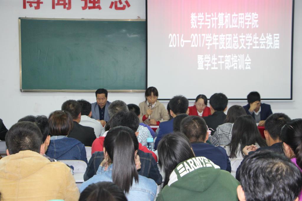 为了使所有学生干部更好地适应工作岗位,不断提高自身综合素质,明确岗位职责,更好地为学院和同学服务。2016年10月27日晚,数计学院在2号楼323教室召开了团总支学生会换届大会暨学生干部系列培训会启动仪式,院党总支副书记田小莉、全体辅导员以及我院团总支学生会干部和班团干部参加了此次大会,会议由学工办主任陈倩主持。