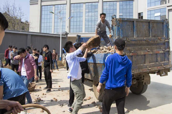 在院学生会主席南江和团总支副书记雷雨萌的组织安排下,草坪中、树丛下,都有同学们的身影。他们半蹲着,动作麻利地拔草、埋头捡垃圾、清理石块,干的如火如荼。不一会儿,每人面前都清理出一堆杂物,随后男生们都拿着竹篓将杂物抬向垃圾车。虽烈日当空,骄阳似火,大家干的汗流浃背,你脱外套,我卷衣袖,一点都没有停歇的意思,干劲十足。同学们认真劳动的样子是骄阳下最亮丽的风景。