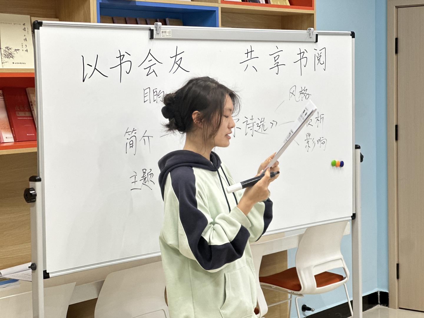 在分享会上,方言同学热情洋溢地介绍了自己最近阅读的书籍《苦难辉煌》,讲述了20世纪中国共产党从诞生,成长到取得革命胜利的艰难历程;陈艺萌,李钥同学也从不同的角度解读作品《活着》和《海底两万里》,分享了书中的精彩片段以及对自己的启发。王萧楠同学通过简介,主题,风格,赏析手法等方面为大家讲述了《泰戈尔诗选》,揭示了泰戈尔诗歌的深刻思想和人文精神。