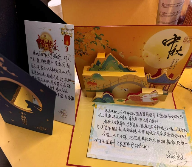数学2501班团支部通过写中秋节寄语、撰写中秋主题故事来传递思念之情。