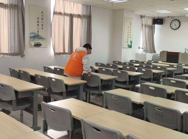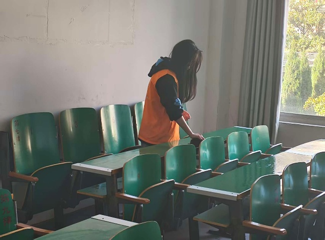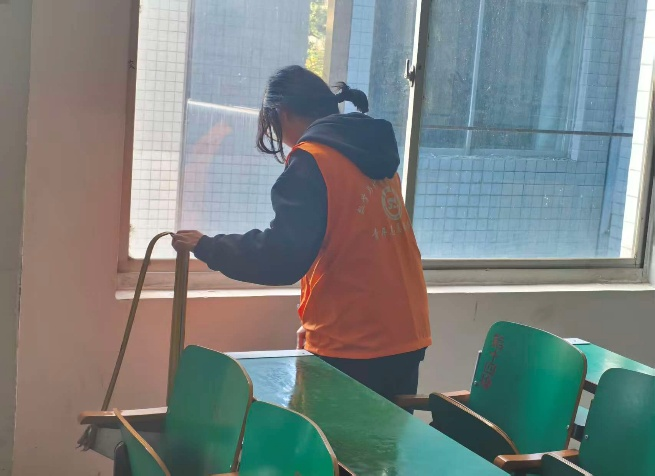 活动中,志愿者们分组行动、各司其职,手持清洁工具对教室进行全方位清扫。大家仔细擦拭黑板、课桌椅、门窗玻璃与多媒体设备,认真清理地面杂物、桌缝垃圾和墙角灰尘,细致整理课桌椅摆放,不放过任何卫生死角。志愿者们干劲十足、配合默契,用双手让教室焕然一新,为师生打造了干净、整洁的教学与学习空间。