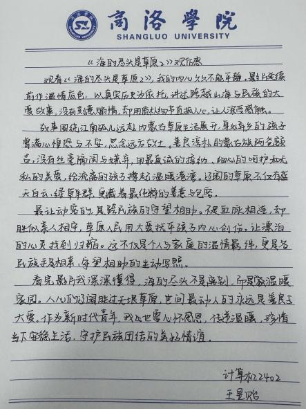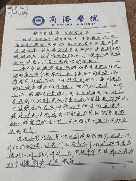 观影结束后,同学们深受触动,认真撰写观后感,结合影片情节畅谈内心感悟。大家深刻感悟到各民族休戚与共、守望相助的深厚情谊,真切体会到民族团结凝聚起的强大力量。不少同学表示,今后会自觉维护民族团结,尊重各民族风俗习惯,主动传递民族温情。同时大家也明白国家安全与民族安全就在身边,青年更应坚守立场,做到不信谣、不传谣,自觉抵制错误言论,严于律己、明辨是非,以实际行动守护校园平安和谐,争做有担当、守底线的新时代青年。