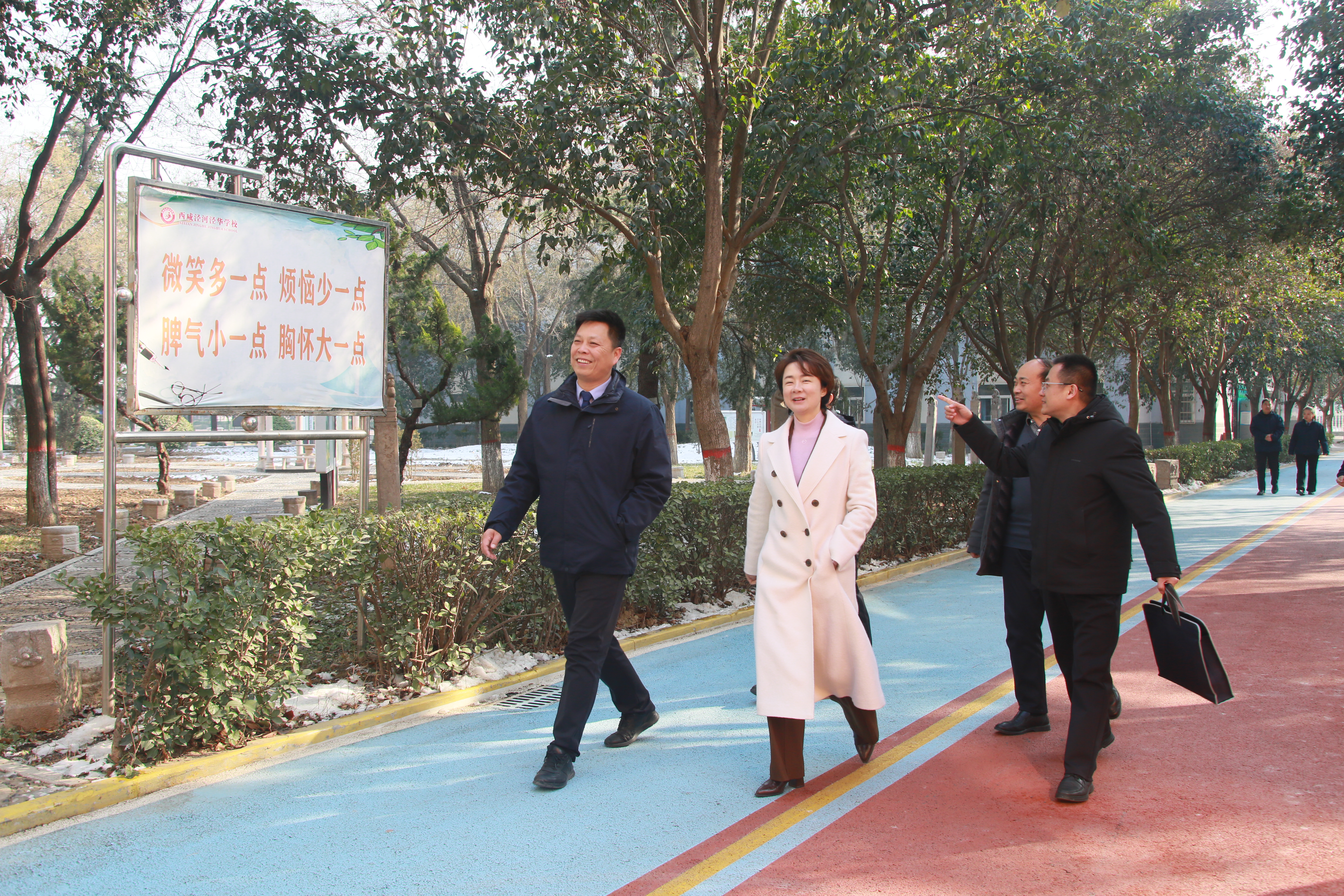 下午,程敏一行前往西咸泾河泾华学校,持续开展走访工作。该校张争航校长热情接待了走访组,引领众人参观校园环境、教学设施以及相关功能场馆,详细介绍了学校的办学规模、特色和师资队伍建设等情况,还分享了学校在学生管理、办学特色等方面的经验与做法。交流中,双方围绕师范专业人才需求、实践基地共建等议题,展开了深入探讨。程敏还与在该校工作的王月、黄健美等校友进行了亲切交流,关切询问校友的工作近况、职业发展和生活状况,倾听校友对母校发展、人才培养、就业工作的意见和建议,寄语校友们立足岗位、建功立业,常念母校、回报母校。