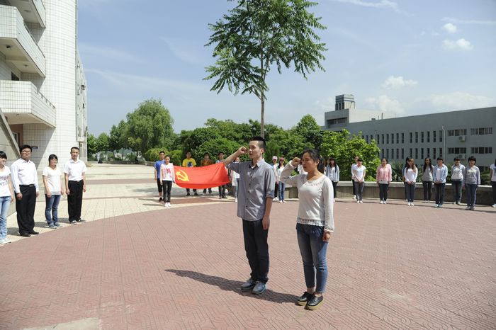 5月18日下午,我院学生党支部在二号教学楼前举行了隆重的入党宣誓仪式,张登铭、屈凡等12名优秀学生站在党旗下庄严宣誓,光荣加入了中国共产党。