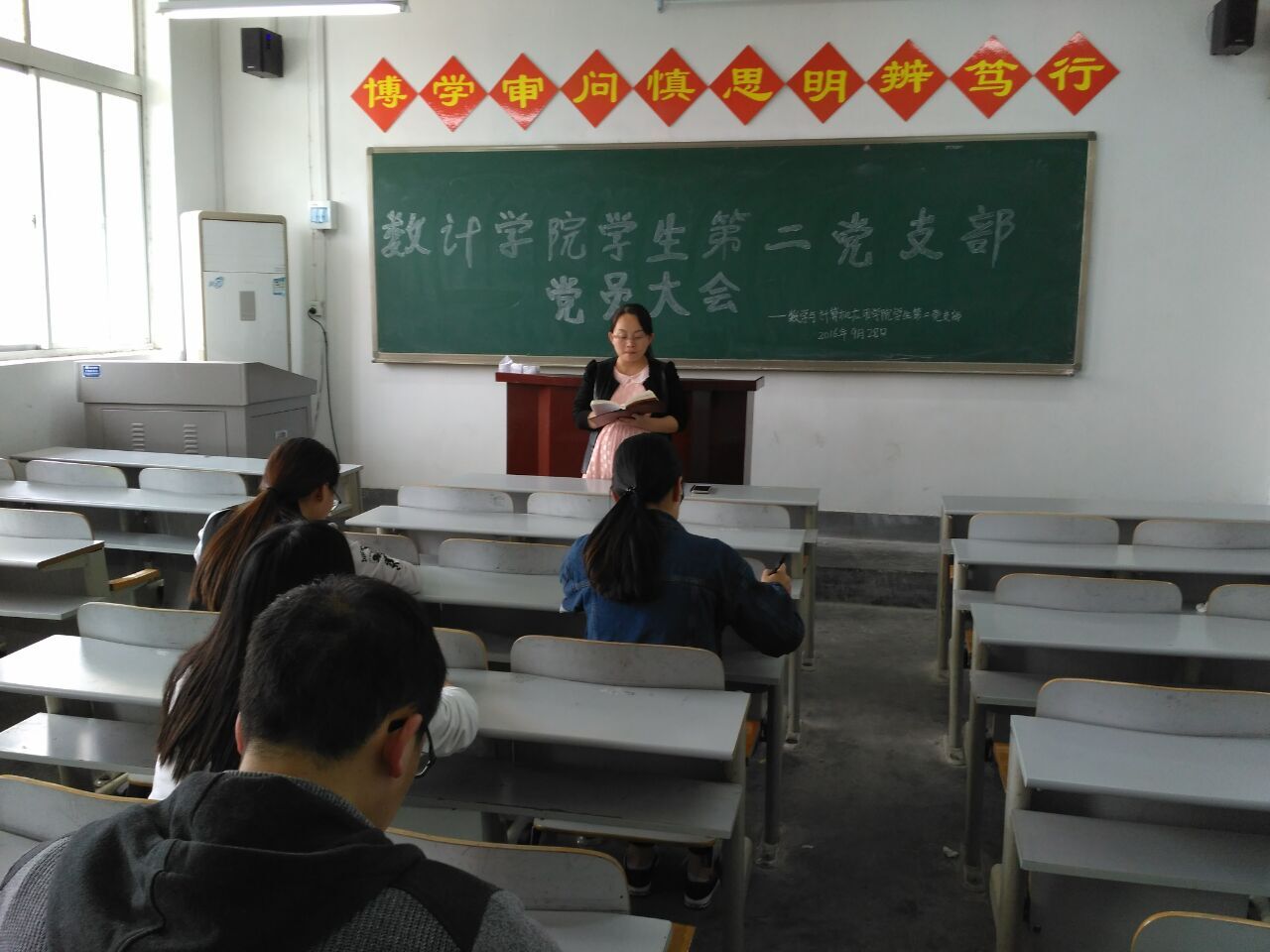按照学校《基层党组织书记“两学一做”学习教育培训会》的总体要求和院党总支的具体安排,9月28日下午4:00,数计学院三个学生党支部组织全体支部党员分别在2号教学楼301教室、306教室和401教室召开了支部党员大会,会议由各支部书记主持。