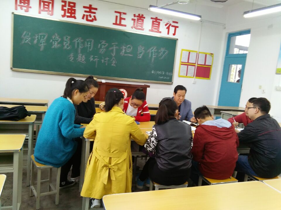 按照学校“两学一做”学习教育领导小组办公室《关于“两学一做”学习教育第三阶段工作安排的通知》精神和院党总支的总体安排,10月12日14:30—18:00,我院各学生党支部分别组织各支部全体党员在二号教学楼401、302和308教室以“发挥党员作用、勇于担当作为”和“强化宗旨意识、联系服务群众”为主题召开了“两学一做”学习教育专题研讨会。会议由各学生党支部书记主持。