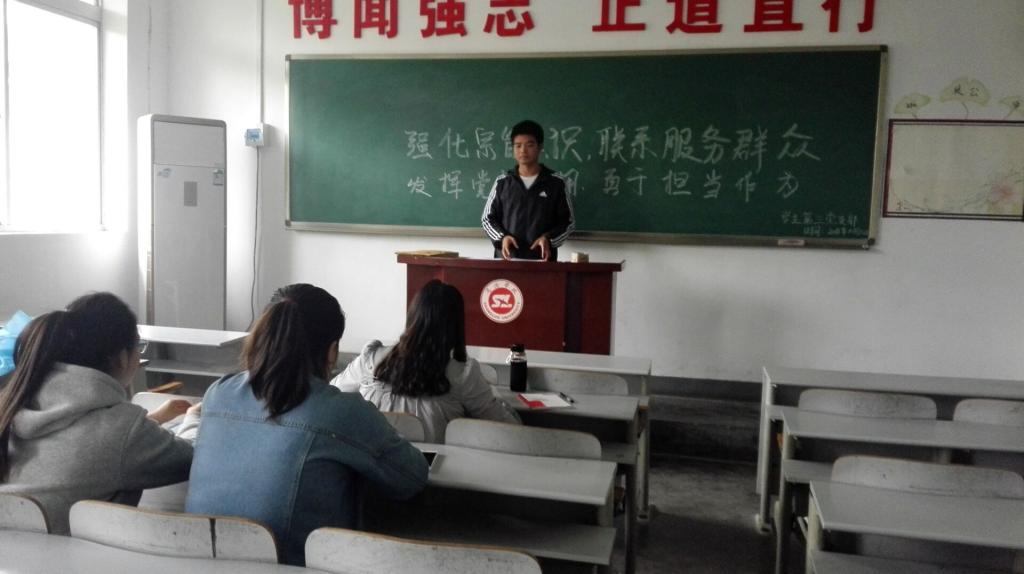 最后各支部学生党员纷纷积极发言,学生党员吴妮说道:大学生党员要刻苦学习,努力掌握各门科学文化知识。大学生党员首先是一名学生,而后才是一名党员,学生党员要在实际行动中起到旗帜作用。要加强理论知识学习,努力提高先进性素质,真正做到在思想上先入党,在各方面为周围同学做出榜样。