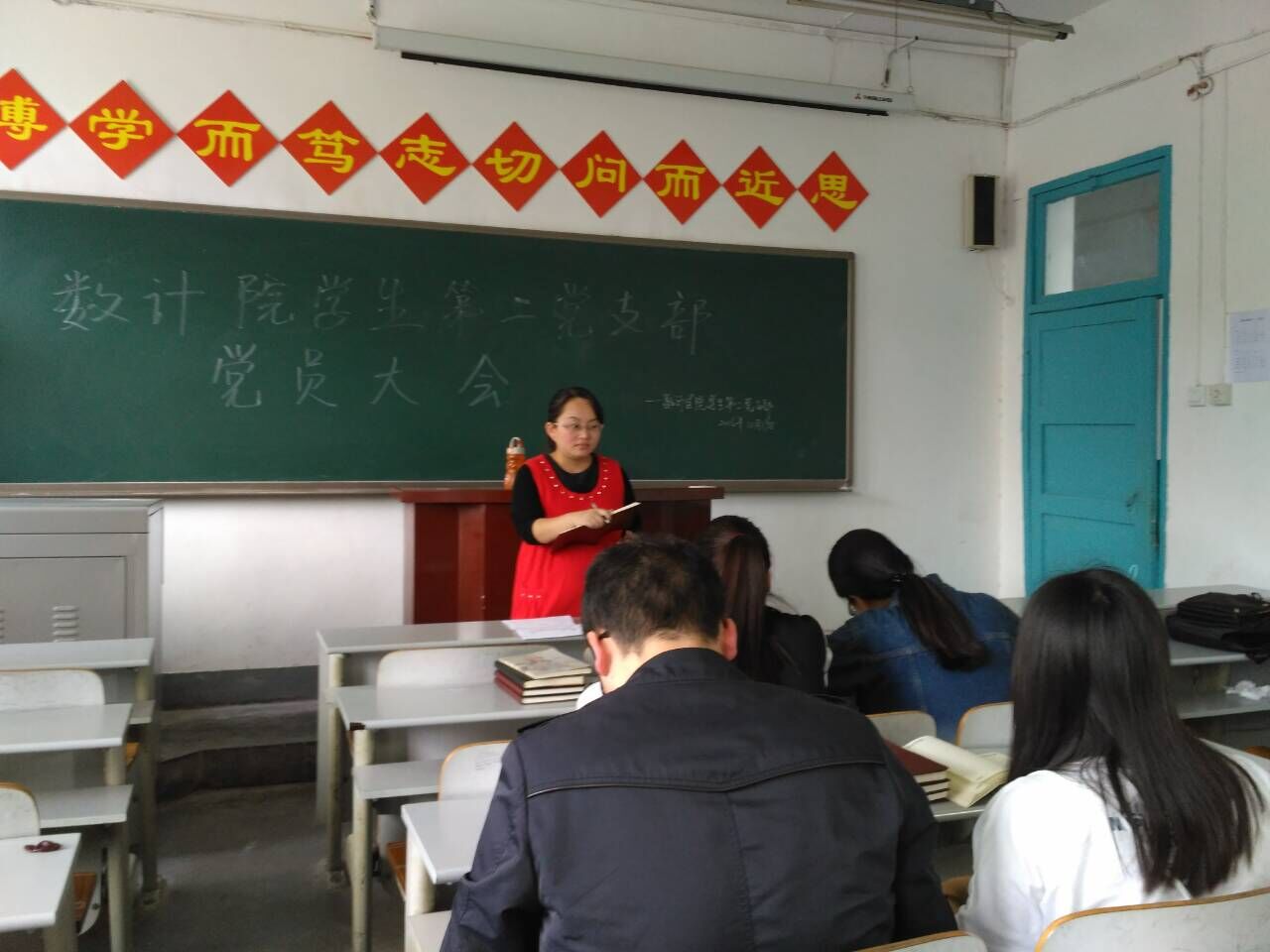 按照学校《中共商洛学院委员会“两学一做”学习教育推进会》的总体要求和院党总支的具体安排,10月19日下午4:00,数计学院三个学生党支部组织全体支部党员分别在2号教学楼402教室、302教室和306教室召开了支部党员大会,会议由各支部书记主持。