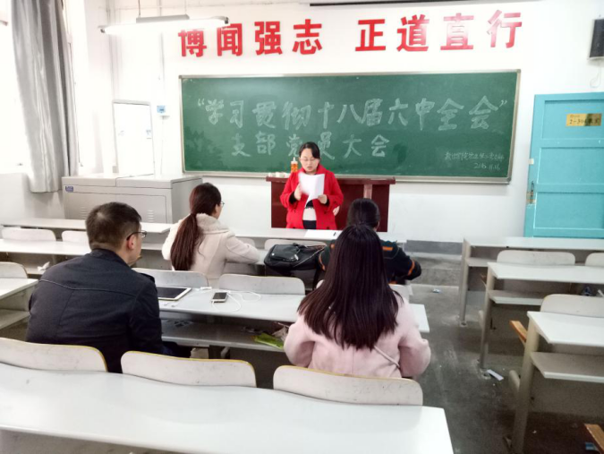 会议开始,各支部书记首先带领全体支部党员学习了《中共商洛学院委员会关于认真学习宣传贯彻十八届六中全会精神的通知》精神,使全体支部党员充分认识到党的十八届六中全会的重要意义。《通知》指出党的十八届六中全会,聚焦全面从严治党这一重大问题,深刻总结党的十八大以来管党治党的新经验,阐述了新形势下全面从严治党的重大意义,吹响了全面从严治党的号角,明确提出要着力维护党中央权威、保证党的团结统一、保持党的先进性和纯洁性。