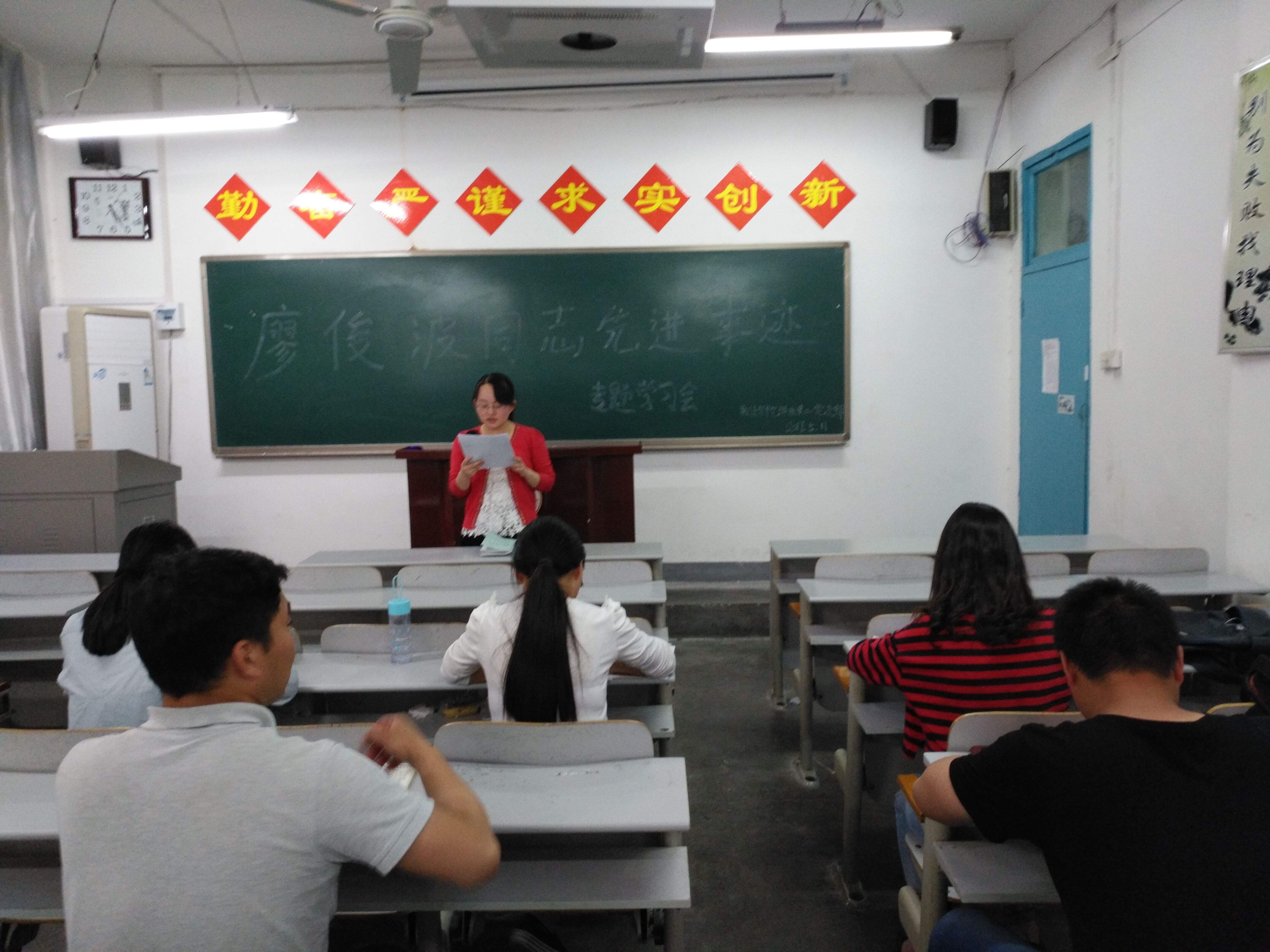 为进一步推动“两学一做”学习教育深入开展,在全体学生党员中形成“知先进、学先进、赶先进”的浓厚氛围,按照学校干部人事处的统一部署和院党总支的具体安排,5月10日—11日下午,数计学院三个学生党支部分别在二号教学楼401、306、303教室召开了向廖俊波同志学习专题学习会,学习廖俊波同志的先进事迹,会议由各学生党支部书记主持。