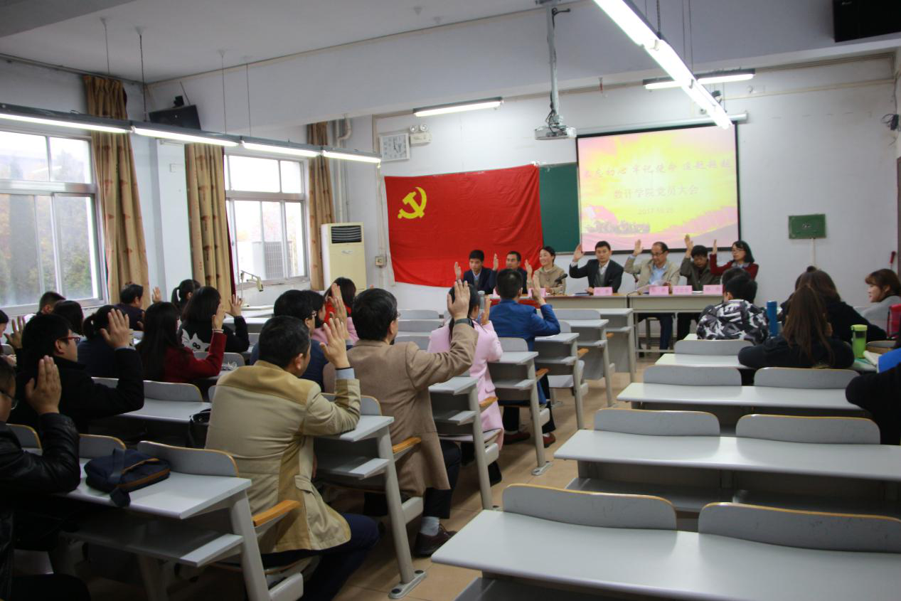 按照学校党委对学院党总支委员会换届选举工作的部署和要求,数计学院党总支于2017年10月25日16:30在二号教学楼多媒体14召开党总支委员换届选举大会。校党委委员、副校长刘勇出席大会并讲话。会议由数计学院院长张林主持。