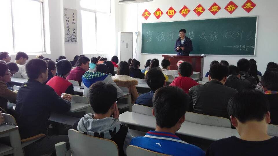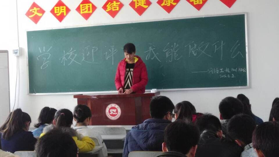 为了更好地迎接2015年本科教学评估,加强我院师生对评估工作的认识,能够以足够的激情,充分的热情,和正确的态度面对本次评估工作,数计学院在四月八号中午在二号教学楼313教室召开了以“学校迎评估,我能做什么”为主题的班会以此加深同学们的认识。