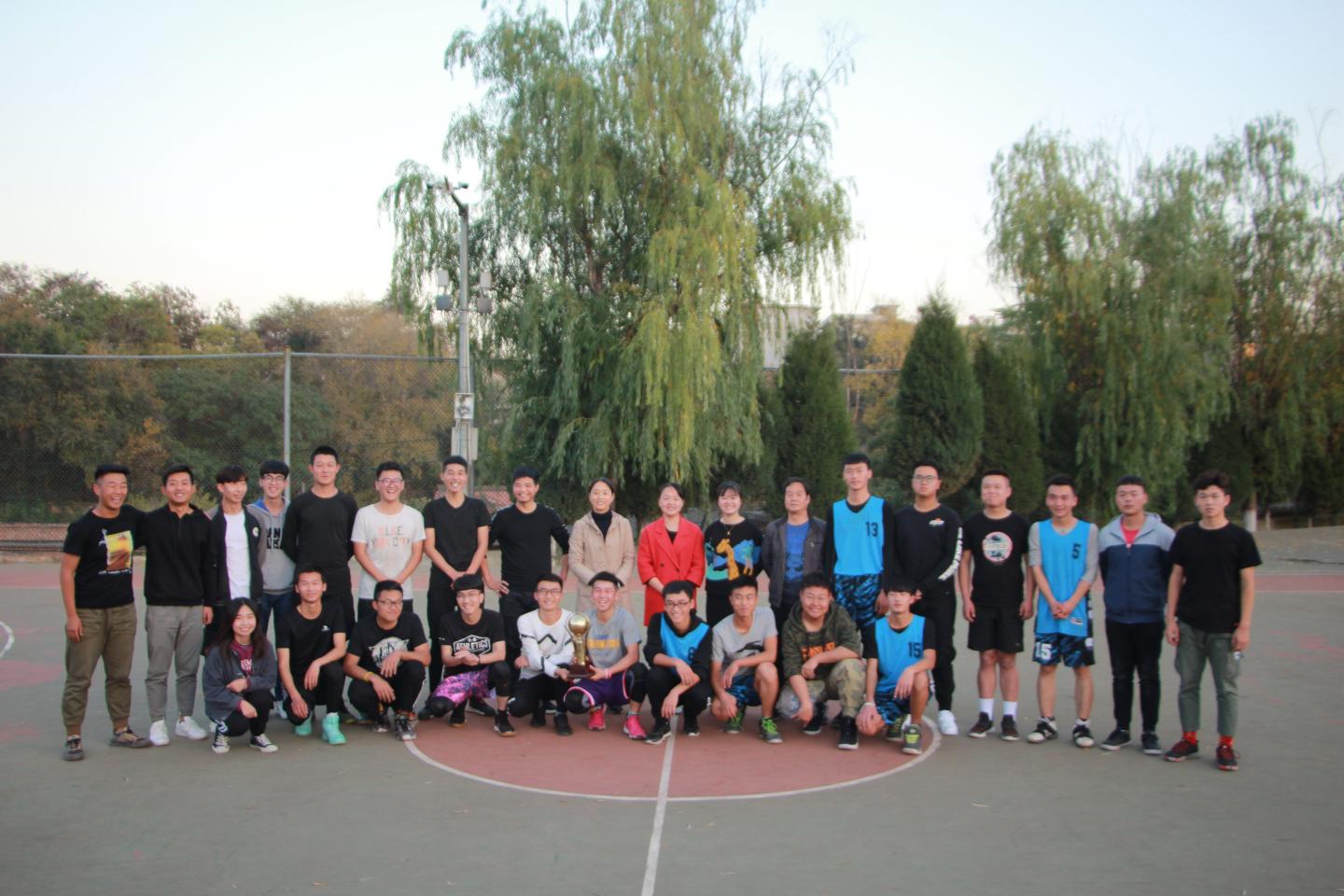 参赛的运动员之间以“你”一个篮板球得分,“我”马上以一个远投还以颜色。比赛现场为之掀起了一次次高潮。最终17级代表队略胜一筹,赢得冠军。在最后的颁奖环节,张磊老师对双方队员的表现进行了简要的点评,党总支书记田小莉为获胜的队员颁发了奖杯,最后全体参赛运动员与到场的老师合影留念,每一个人都笑的十分开心。比赛在夕阳的映照下圆满结束。