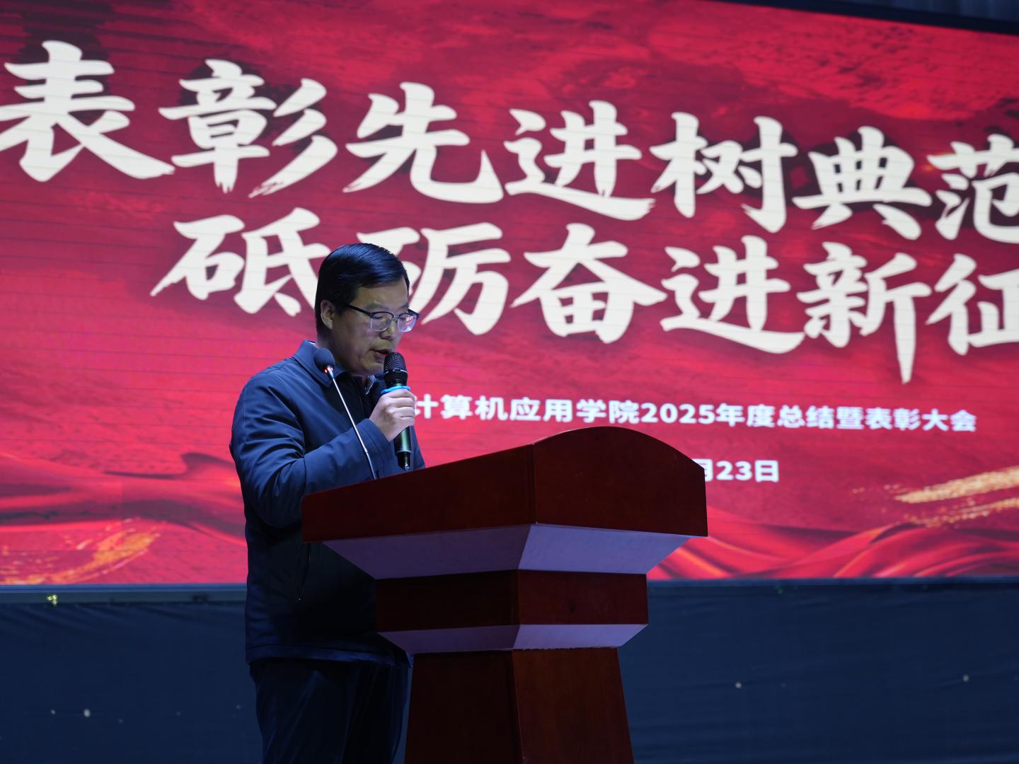 大会在朝气蓬勃的啦啦操表演中拉开帷幕,欢快节奏彰显全院学子奋进姿态。随后,院长李会荣发表致辞,他系统梳理学院年度各项工作进展,肯定了先进典型的榜样引领作用,并明确部署了下阶段重点任务。他勉励学子们以表彰为新起点,既要仰望星空怀揣理想,又要脚踏实地勇担使命,在数字中国建设的实践中书写青春华章,同时向全体师生送上新年的美好祝福,激励全体师生踔厉奋发、再创佳绩。