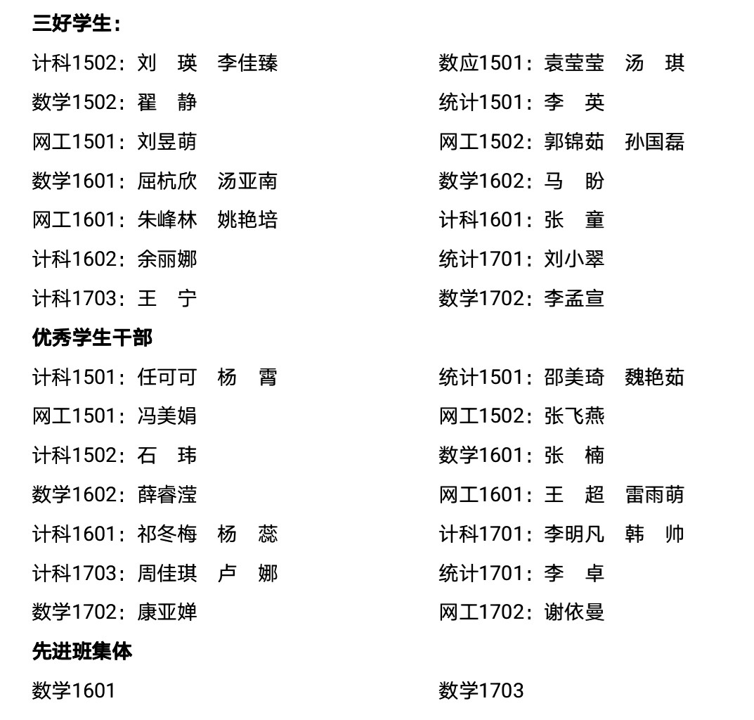 2017-2018学年三好学生、优秀学生干部、先进班集体名单